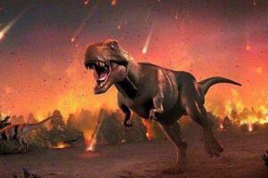 小行星撞击地球,导致两个地球都着火了,所有的恐龙都被烧死了。