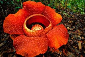 食人花又名王花,是世界上最大的花,所以有世界花王的美誉。大王花直径可达1.5米,花瓣厚度1.4厘米。一朵花有五片花瓣,叶子有30厘米长。造型十分娇艳,花形如同天轮。