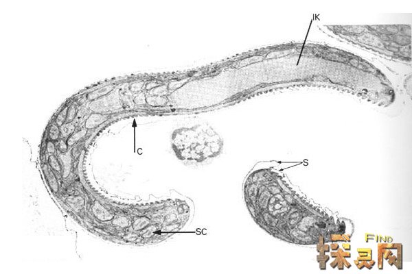 书中宽、扁、细、长的乳白色“面条”就是绦虫,主要寄生在肠道内,引起人体消化道不适。看起来很恶心!