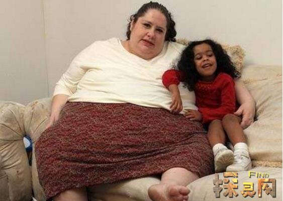 美国新泽西44岁女子唐娜辛普森体重903磅,是网络上有名的“半吨胖妈妈”。她从小就有暴饮暴食的习惯。9岁时,她体重82公斤。2006年,唐娜和男友菲利普相识仅三个月就怀孕了。2007年2月,当唐娜生下4.02公斤的女儿杰奎琳时,体重达到235公斤,成为有史以来最重的产妇。