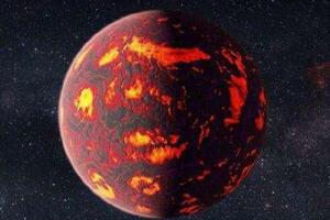 但他显然和地球很不一样。这是一个仿佛身处地狱的“地球”,表面温度过高,仿佛被太上老君丹炉中的火焰焚烧。原来这颗行星离中央恒星太近了,只有太阳系中水星和太阳距离的四十分之一左右!它的表面温度高于2000摄氏度,星球表面已经完全融化,甚至可能已经形成了巨大的熔岩海洋。它确实是宇宙中十颗最可怕的行星中最可怕的一颗!